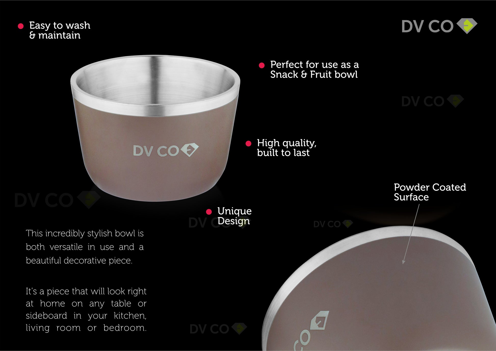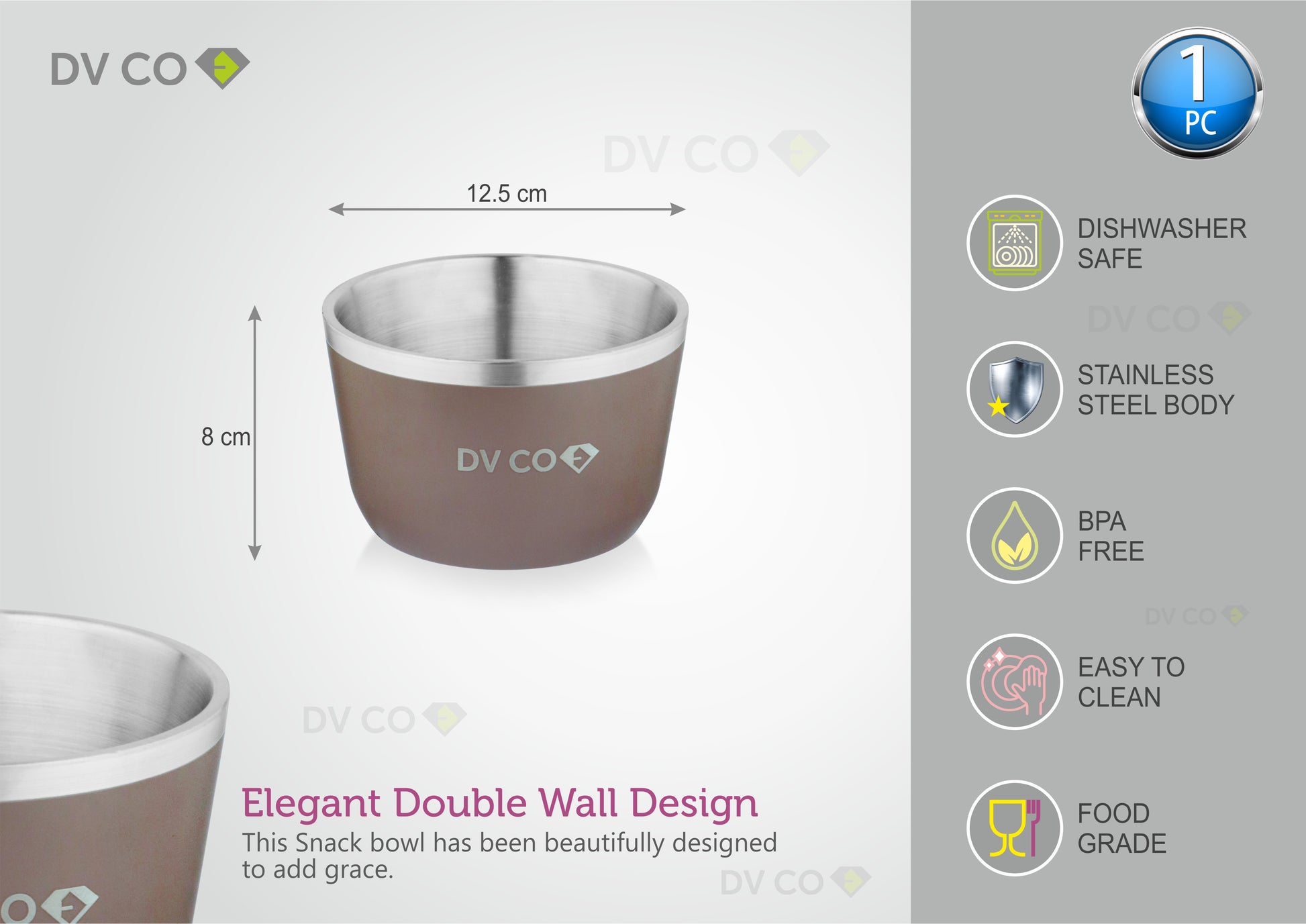 Experience the perfect balance of style, durability, and practicality with the DVCO Double Wall Stainless Steel Snack Bowl. Crafted with a premium stainless steel body and a powder-coated exterior, this bowl adds a touch of modern elegance to any table setting. Whether you’re serving snacks, fruits, nuts, or dry items, it elevates your dining experience effortlessly.