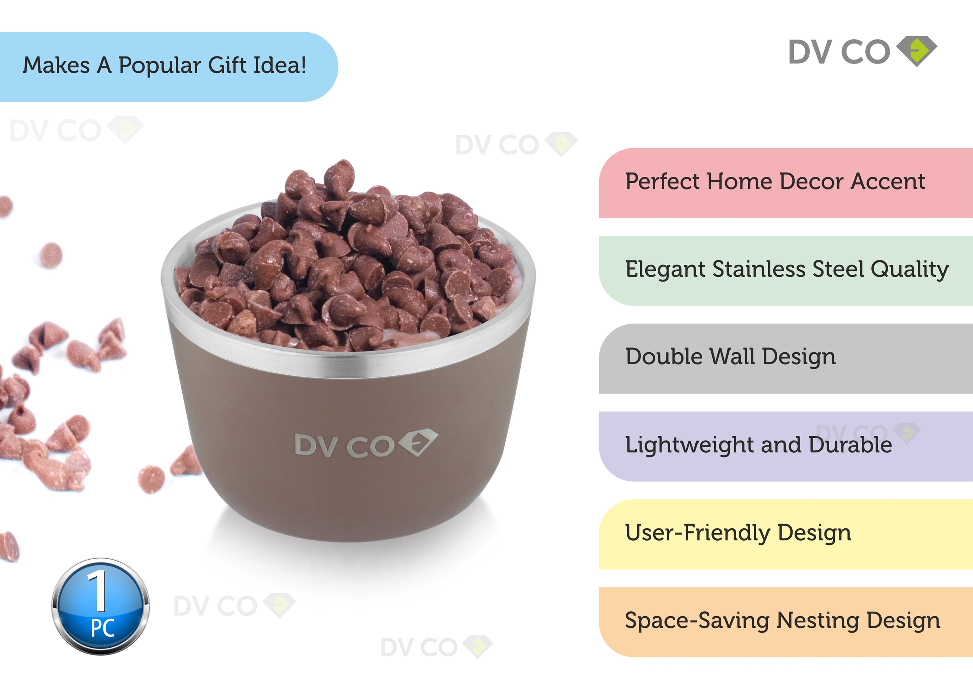 Made from high-grade, rust-resistant stainless steel, the DVCO snack bowl is engineered for daily use. It’s BPA-free, food-safe, and non-toxic, ensuring complete safety for you and your family. The powder-coated finish not only enhances its aesthetic appeal but also offers superior resistance to scratches and fading.